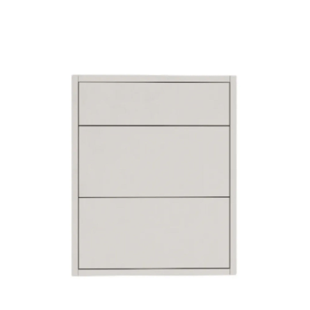 Meuble-lavabo sur pied de style brillant. Boîtier en mélamine de 5/8 po. Unité préassemblée et prête à installer. Façades de tiroirs en polymère au fini blanc brillant. Boîtier latéral en métal avec glissières de tiroir à fermeture en douceur.