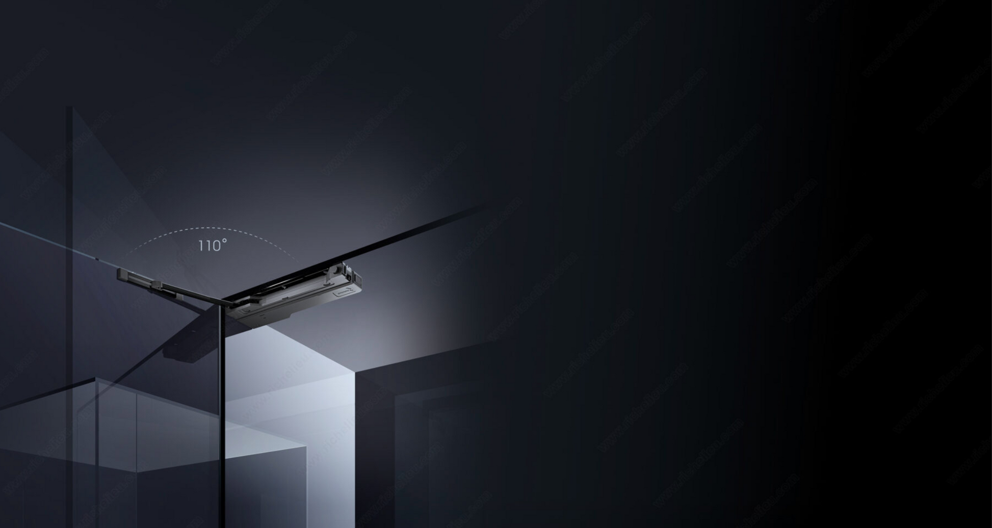 Le R Push est équipé d'un bras d'assistance qui ouvre complètement la porte par simple pression. Aucun branchement électrique n'est requis : le R Push fonctionne de manière 100 % mécanique, pour un design élégant et haut de gamme, sans poignée ni câble.
