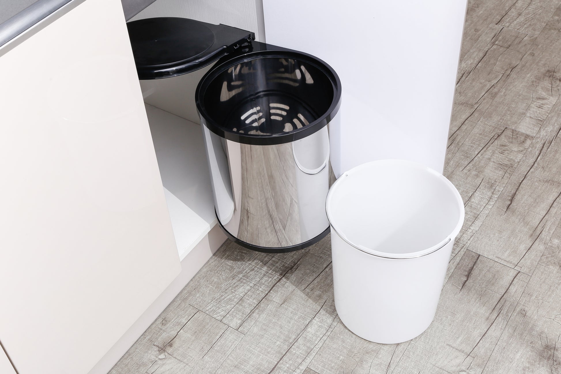 Poubelle ronde pivotante en acier inoxydable et noir, 14 L