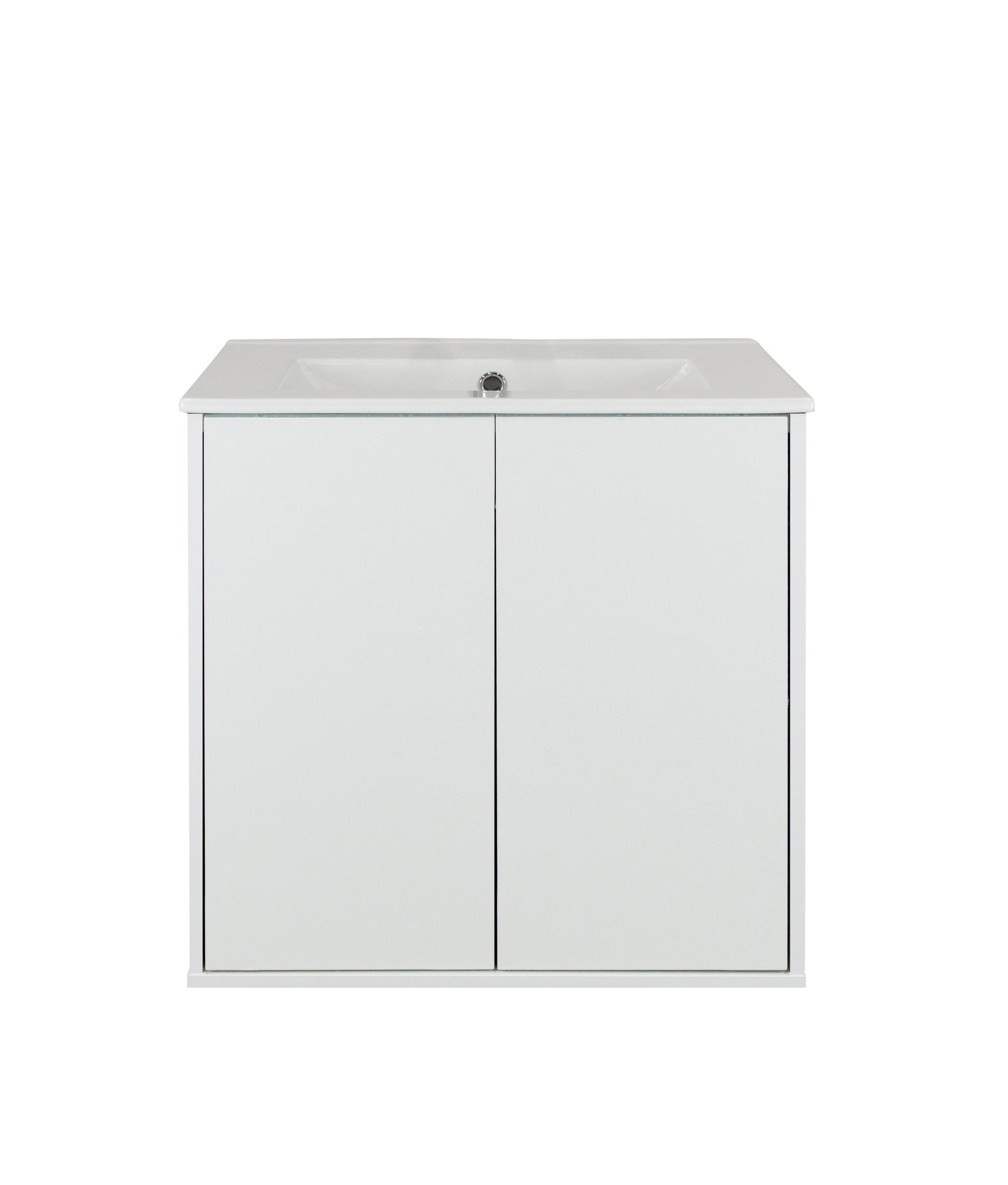 Meuble-lavabo sur pied de style Laqué . Carcasse en mélamine de 5/8 po. Prêt à installer. Portes en polymère au fini blanc Laqué. Carcasse latérale en métal avec glissières à fermeture amortie.