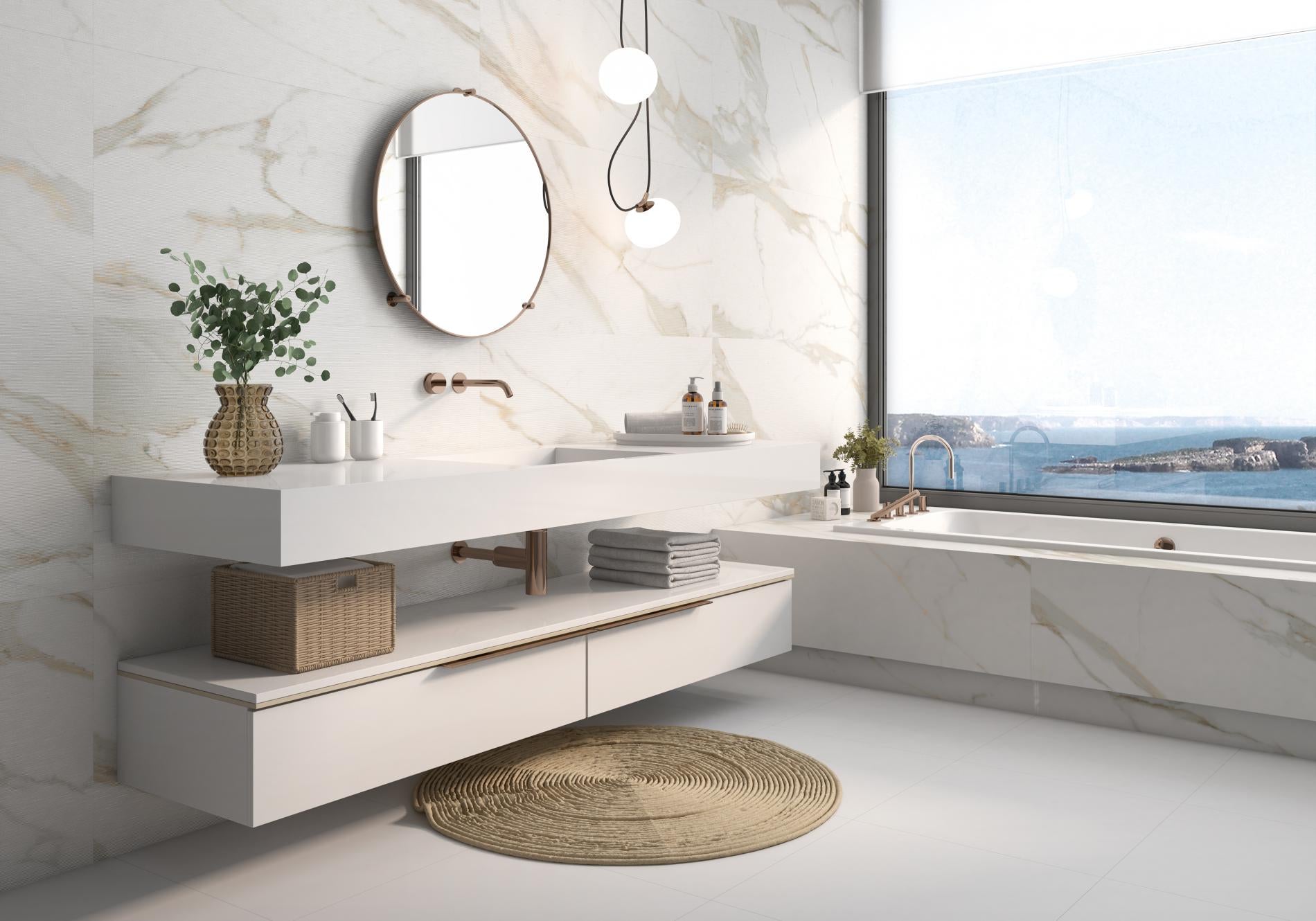 Discover the CALACATA porcelain ceramic tile, a stylish and durable flooring solution. Available in 3 colors, 3 sizes, and 2 finishs. Perfect for indoor and outdoor flooring, water-resistant, and easy to maintain.
